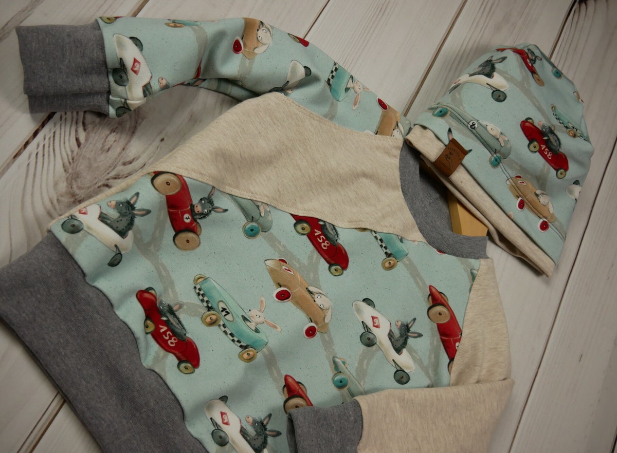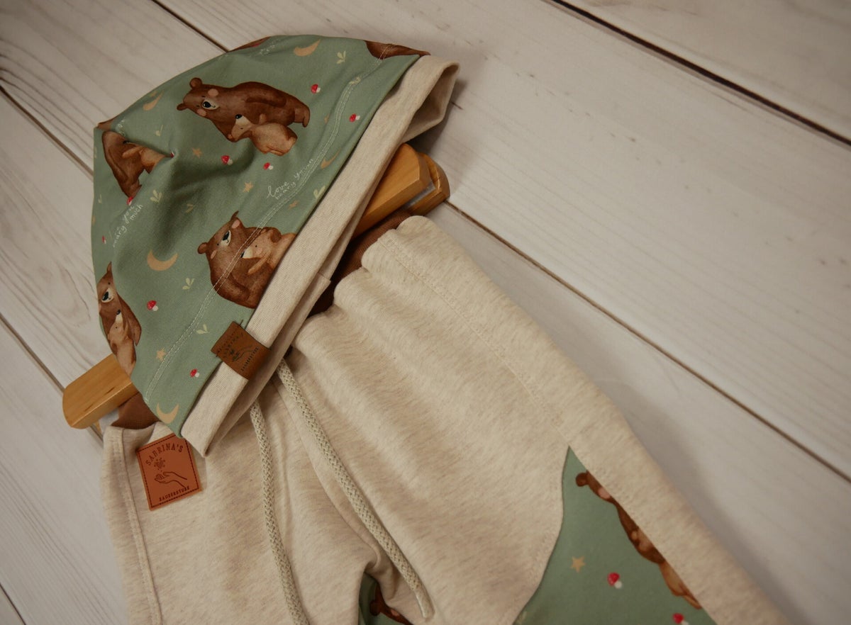 Die perfekte Stoffauswahl ist Jersey, French Terry oder auch gefüttert mit Baumwollfleece.